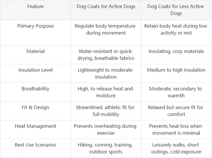 Dog Coats Selection for Active vs. Less Active Dogs